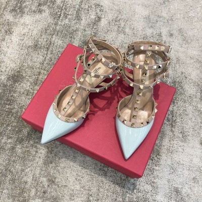 Valentino VT Collection Triple Strap Mid Heel 6.5cm Patent Leather Blue