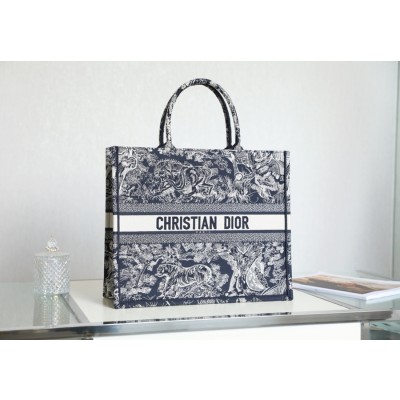 DIOR TOTE blue striped tiger pattern