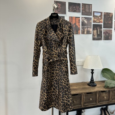 Fendi Style Long Belt Leather Windbreaker
