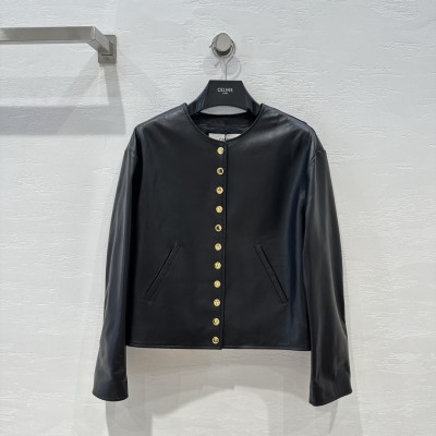 Celine silhouette gold buckle leather jacket