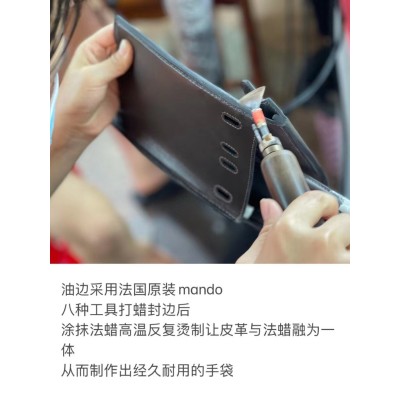 Hermes bag making process:Oiled edges using original French mandalas