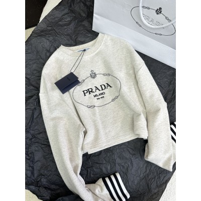 PRADA Letter Embroidered Contrast Rib Cuff Sweater