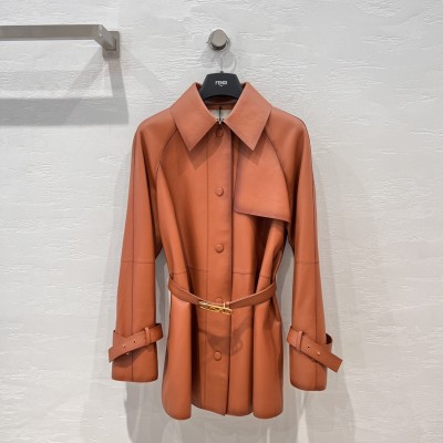 Fendi Style Long Belt Leather Windbreaker