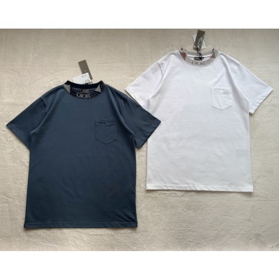 Dior knitted floral collar solid color round neck embroidery short sleeves