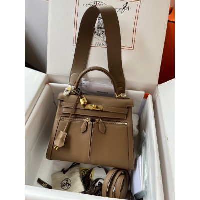 Kelly25cm epsom gold buckle lipstick powder and elephant gray