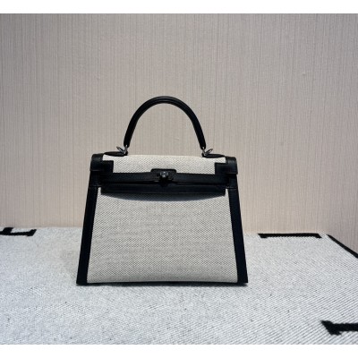 Kelly 25 canvas and swift leather second-hand bag