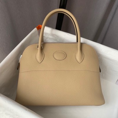 Bolide 27cm Imported original Epsom leather Semi hand waxed and stitched peach silver buckle