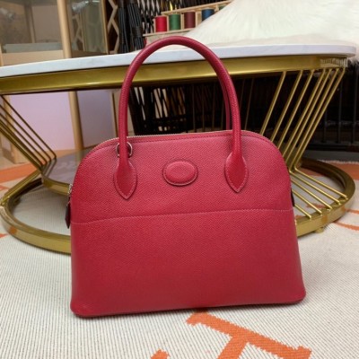 Bolide 27cm Imported original Epsom leather Half hand waxed stitching Gemstone red Silver buckle