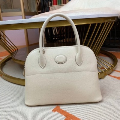 Bolide 27cm Imported original Epsom leather Half hand waxed stitching Milkshake white Silver buckle