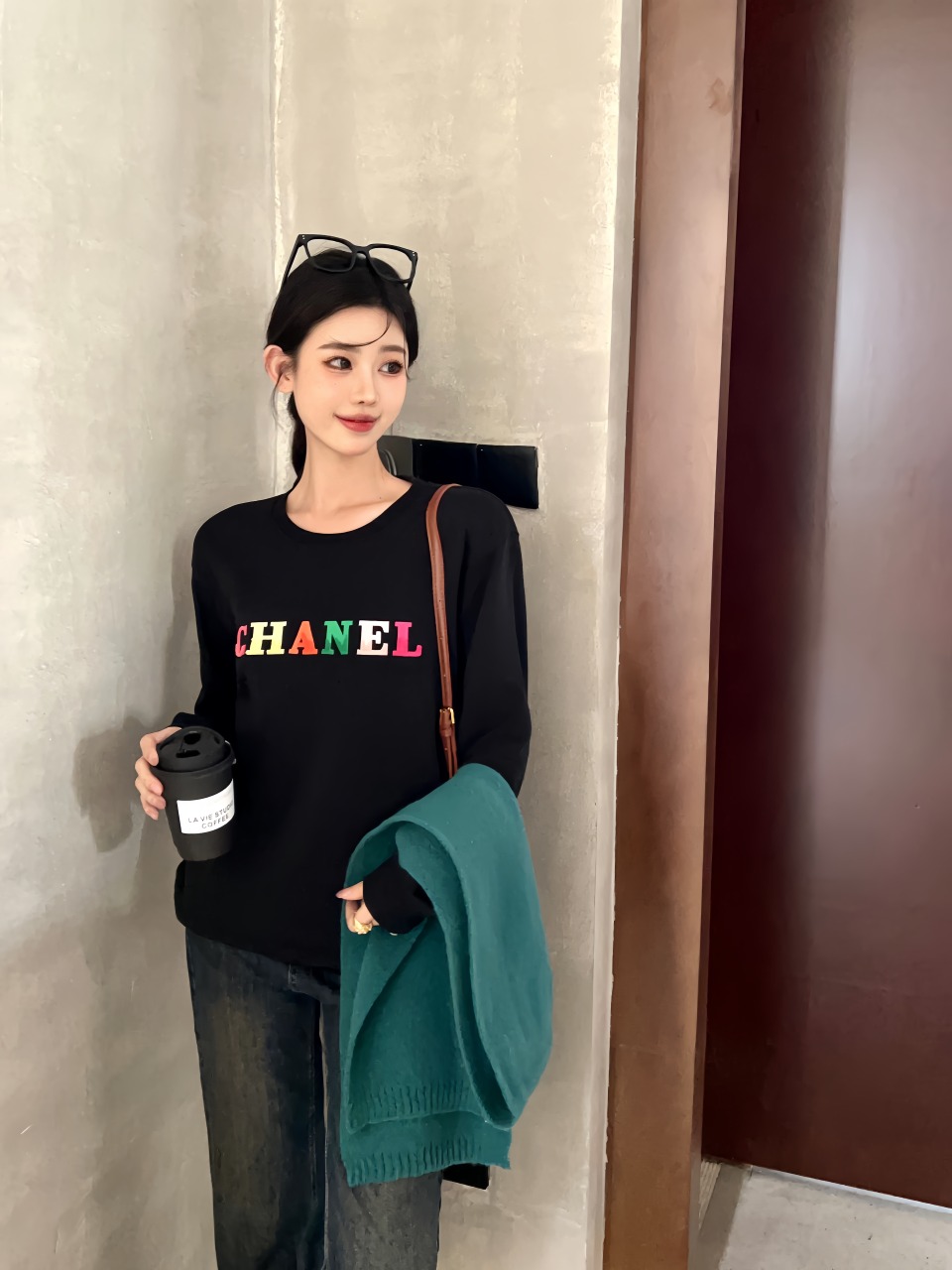 Chanel Small Fragrant Embroidered Colorful Character Logo Round Neck Sweater
