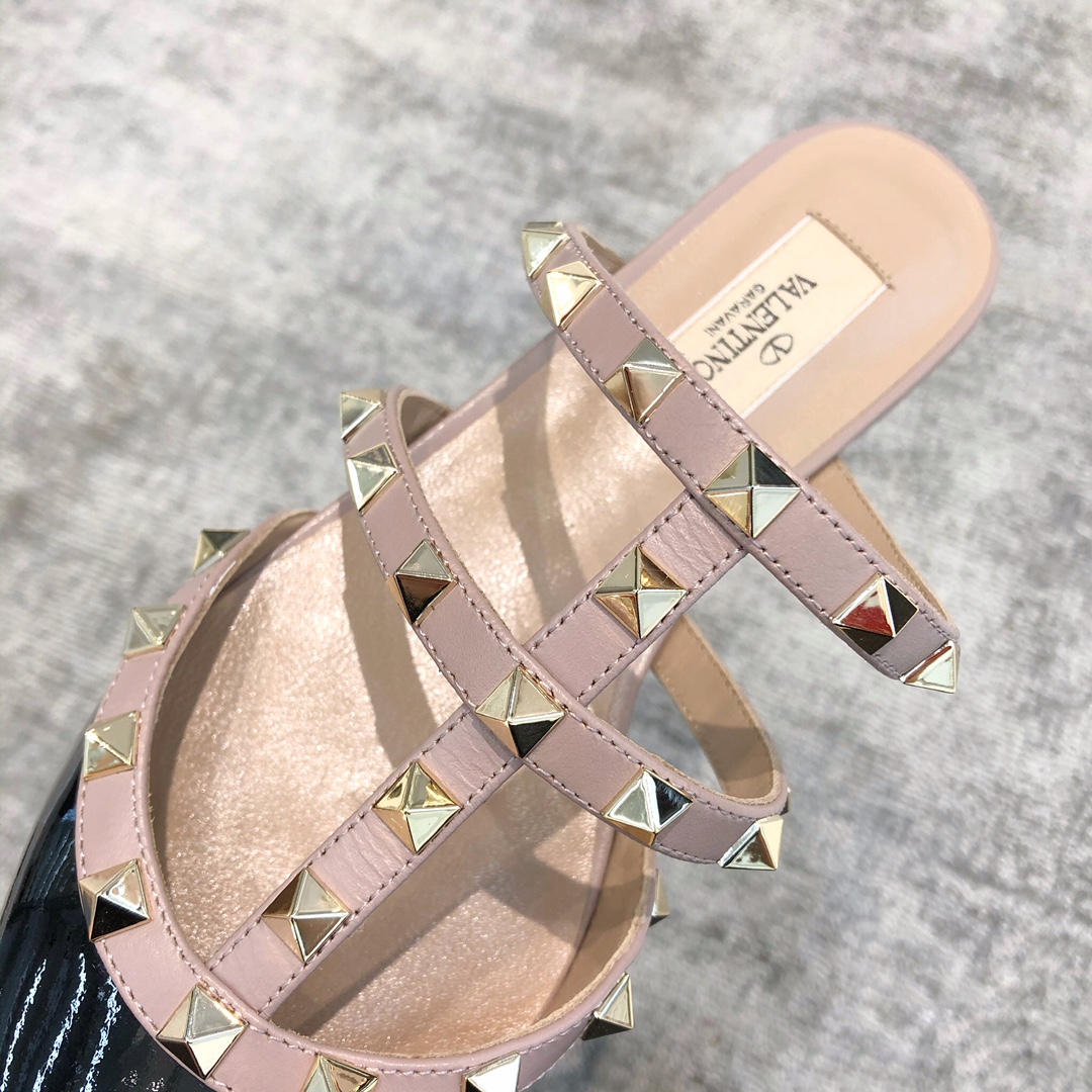 华伦天奴 VT系列 三带平跟拖 漆皮黑色